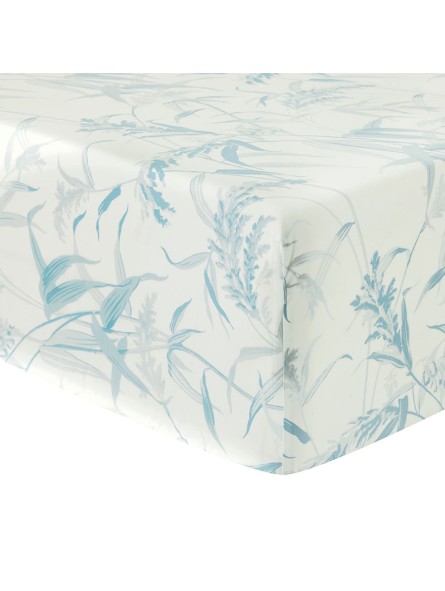 La parure de drap Estampe par Anne de Solène, s'illustre de perruches délicates et de bambous graciles qui semblent flotter au vent, dans un camaïeu reposant de gris bleutés. Le support en percale de coton Bio et les finitions raffinées en font un produit intemporel et inusable.