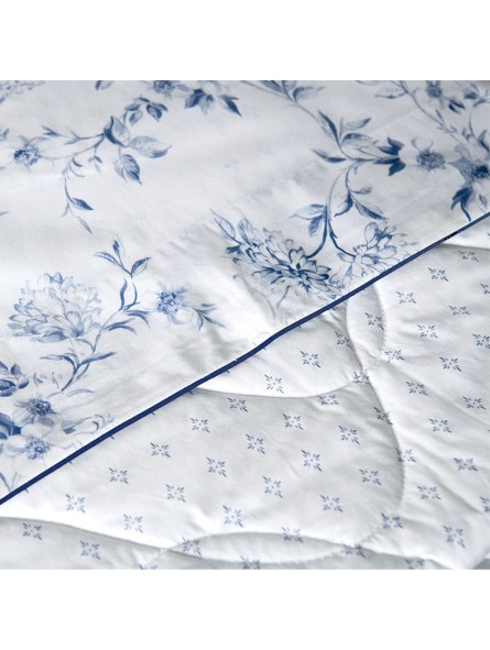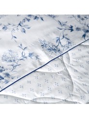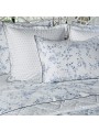 La parure de drap Malacca par Anne de Solène, s'illustre de volutes florales inspirées des indiennes dans un monochrome bleu sur fond blanc. Le motif coordonné en mouche provençale confirme le caractère méridional de ce modèle traditionnel subtilement revisité. Le support en percale de coton Bio et les finitions raffinées en font un produit intemporel et inusable.