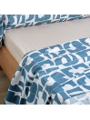 Elle existe en 2 variantes bleu paon et terracotta et se compose d'un drap plat, un traversin, 2 taies d'oreiller carrées et un drap housse.