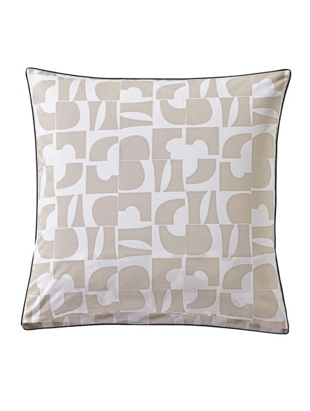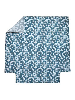 La parure de drap Craft par Blanc des Vosges renouvelle le motif géométrique avec ce jeu de figures unies sur un fond écru. L'originalité réside dans le parti pris monochrome de ce motif, décliné en deux couleurs complémentaires pour un effet positif-négatif moderne et dynamique.