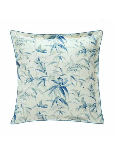 La taie d'oreiller Estampe par Anne de Solène, s'illustre de perruches délicates et de bambous graciles qui semblent flotter au vent, dans un camaïeu reposant de gris bleutés. Le support en percale de coton Bio et les finitions raffinées en font un produit intemporel et inusable.