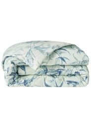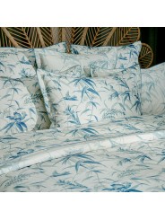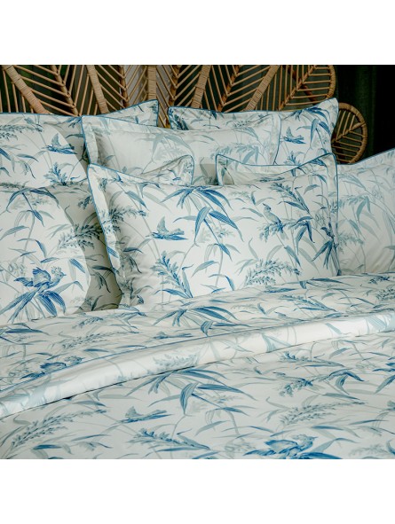 La parure de couette Estampe par Anne de Solène, s'illustre de perruches délicates et de bambous graciles qui semblent flotter au vent, dans un camaïeu reposant de gris bleutés. Le support en percale de coton Bio et les finitions raffinées en font un produit intemporel et inusable.
