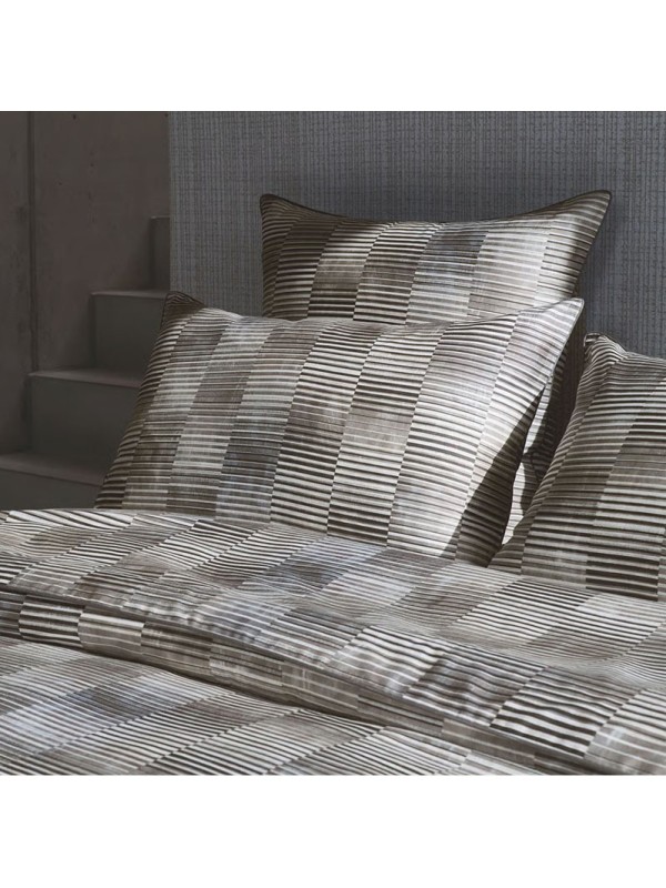 La taie d'oreiller Reflet par Anne de Solène, au graphisme radical et épuré, vibre de lignes mouvantes et d'ombres texturées. Décliné dans un camaïeu de beiges et de gris, souligné d'un discret filet noir, ce motif masculin vous séduira par son look moderne et minimaliste. Il vous séduira par la douceur et la souplesse de son satin de coton biologique.